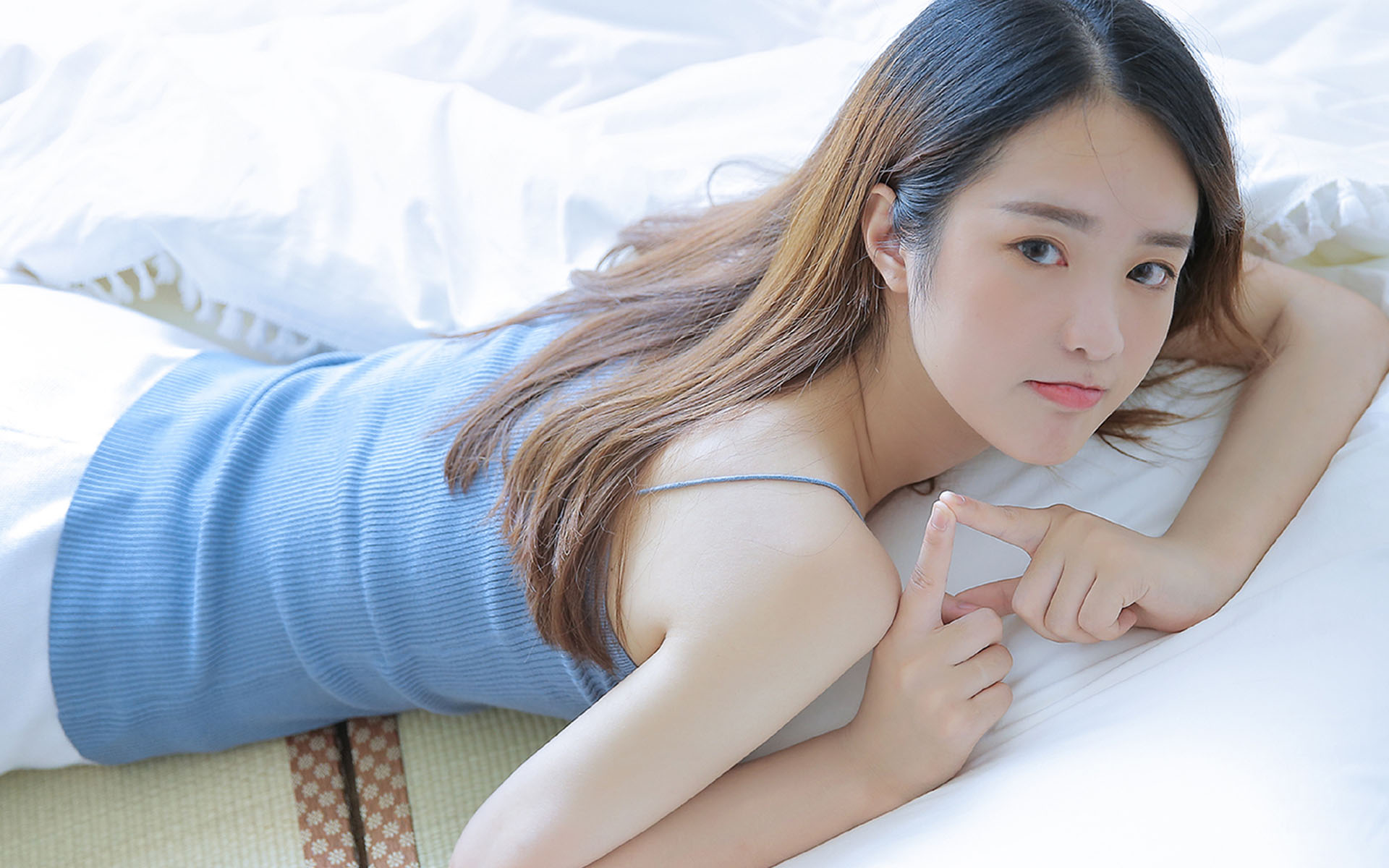 我的脚只是象征性地拍着水,父亲的手不时在我那娇小的乳房上拿捏一下, 而另一只手几乎是抵着我的阴户,身下那一股热流弄得我一派烟水桃花情欲迷离。