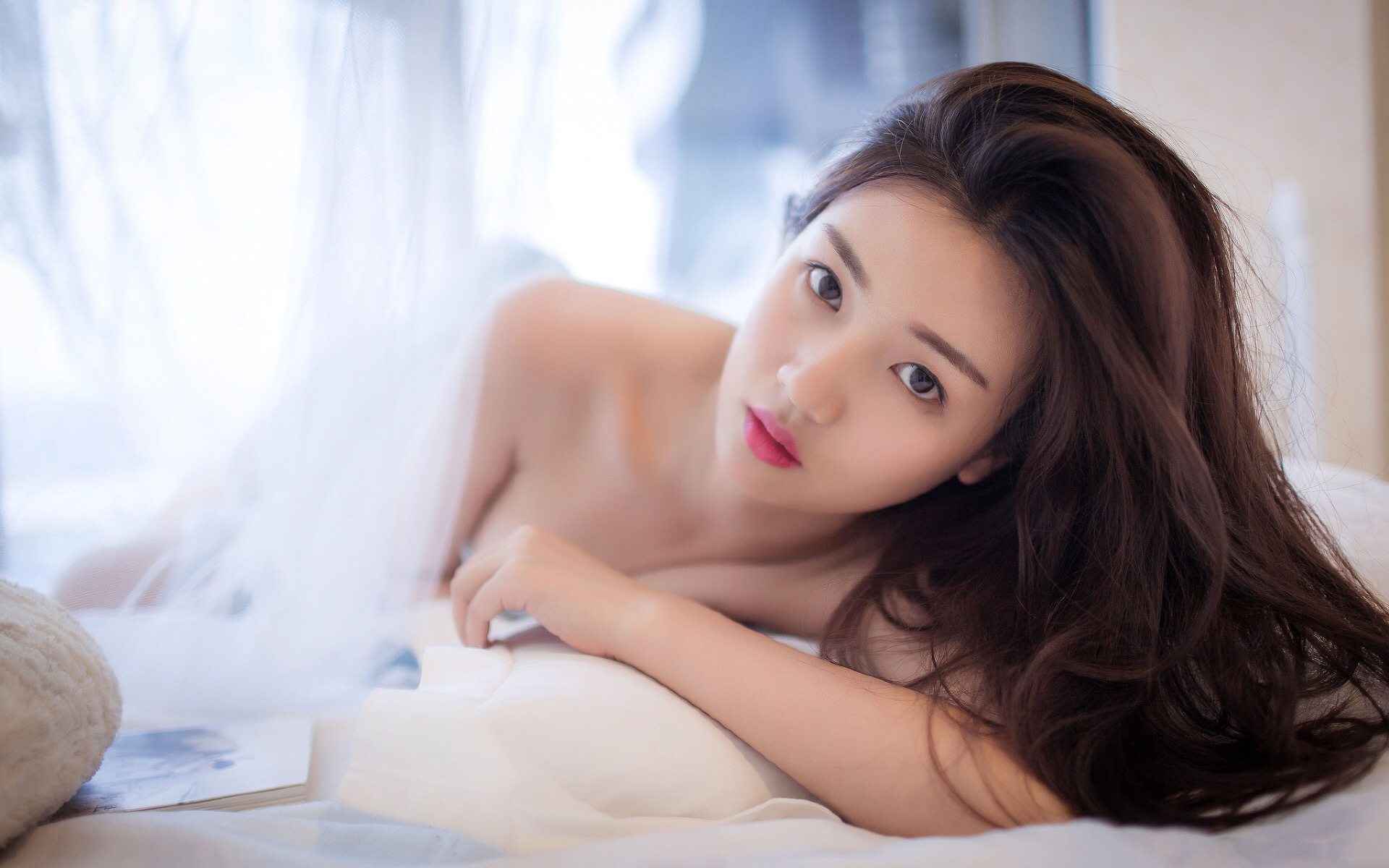 她站起来,在窗前站着,将低胸晚装徐徐褪下,细细的肩带从玉臂滑下来。
